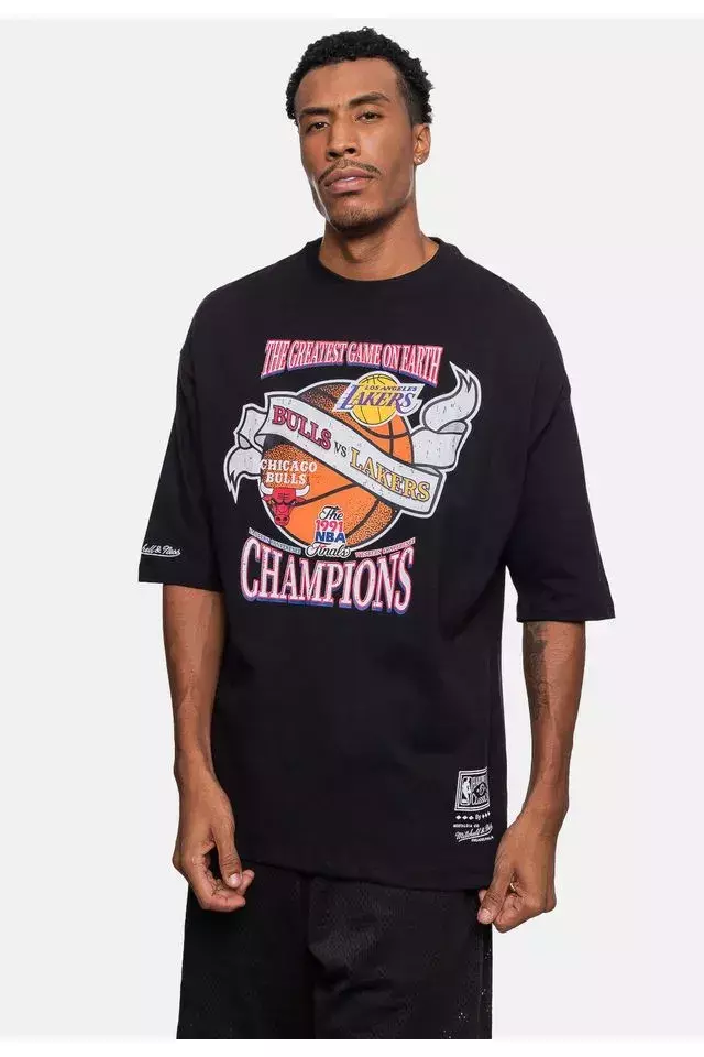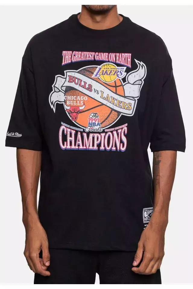 Muito mais do que uma camiseta, essa peça carrega um dos momentos mais icônicos da história do basquete mundial. A Mitchell & Ness Champions Preta celebra as finais da NBA de 1991 – a primeira conquista de Michael Jordan com o Chicago Bulls e o último jogo de Magic Johnson pelos Lakers em uma final.